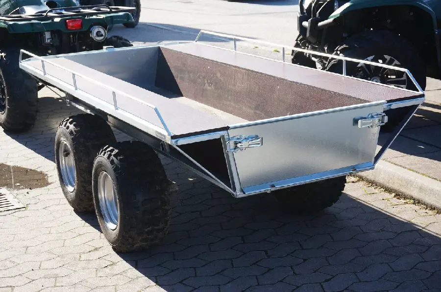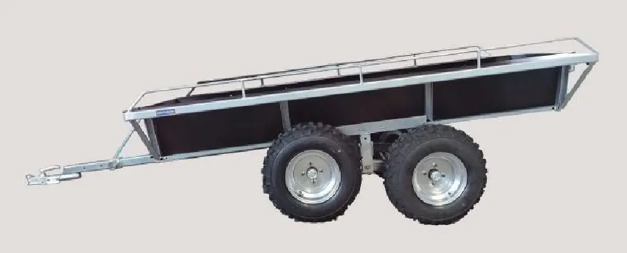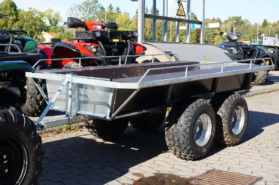 *Svensktillverkad flakboggievagn i plyfa, funktionalitet och kvalitet i ett. *Robust vagn med ett allsidigt användningsområde. Invändiga mått: Längd: 230 cm Bredd: 118, 5 cm Max last: 1000kg Hjul: 22” (Yamaha atv vagn lejab flakboggie bike)