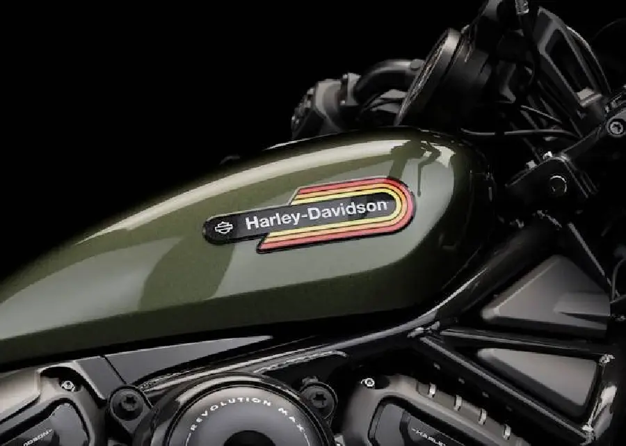 En platt linje från tanken till stänkskärmen och jordnötsformat luftskydd med klassiskt Sportster-DNA, med 70-talsinspirerad tankgrafik.