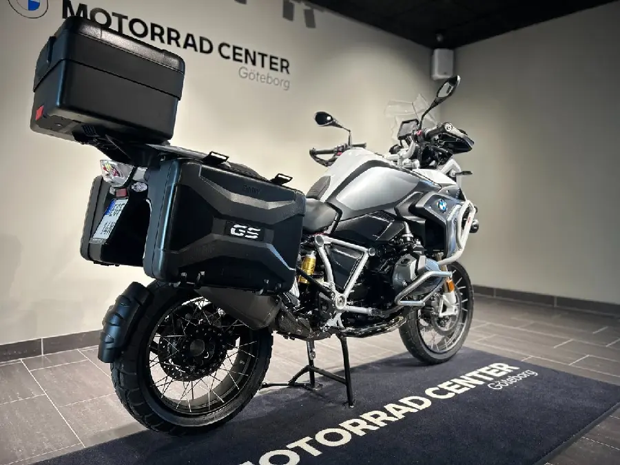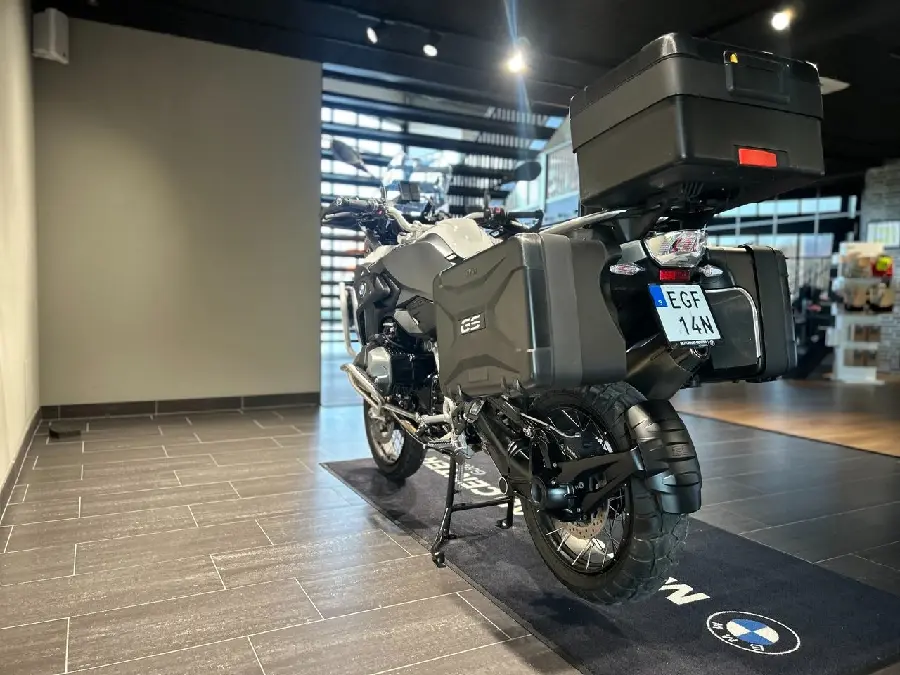R1250GS med Aakrapovic och väskor samt serviceavtal på endast 963 mil. Nästa besiktning: 2027-09-30. Senaste service: 2025-04-07 på 539 mil. Nästa service: 2026-04-07 eller vid 1539 mil. Däck fram: 70%. Däck bak: byts innan leverans. Effekt: 136 hk. Utrustning: 3st väskor med Wunderlich lastrack på sidoväskorna, extraljus med HEX ezCAN, övreskyddsbågar, Adaptive Headlights, Engine drag torque control, Dynamic ESA, Keyless Ride, Akrapovic sport silencer, Daytime running lights, Deluxe headlight, Gearshift assistant Pro, Driving modes Pro, Comfort Package, Touring package, Dynamic package, Preparation... navigation unit, Exhaust manifold chrome-plated, Heated handlebar grips, RDC, Cruise control, Hand protector, Cruising Light, Multifunctional turn signal bulbs, Multifunctional turn signal bulbs II, Alarm system, Engine protection bar, Case holder left/right, Intelligent emergency call, Teleservices, Cross-spoke wheels. Extranyckel samt instruktion/servicebok medföljer. Fabriksgaranti gäller tom: 2026-10-05 eller 499999km samt Service Inclusive serviceavtal tom: 2026-10-05 eller 30001 km på detta fordon. Vi tar hand om din inbytesmotorcykel och finansierar förmånligt ditt nya fordon. Exempel vid finansiering: 20% kontant: 44 179kr i 36 månader med 55% i restvärde till en månadskostnad utav: 2 408kr. Kontakta oss på 031-3880003 för mer information.
