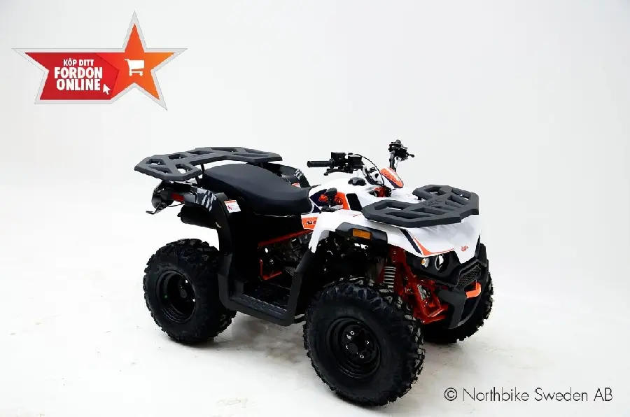 AU180 är en kraftfull ATV som lämpar sig för lite äldre barn. Under kåporna sitter det en pålitlig 4-taktsmotor och en CVT-växellåda med back. Styrningen är lätt tack vare den mycket goda stötdämpningen som också bidrar till mjuk körning på både väg och i tuffare terräng. Kombinerat med en stark och lätt ram ger det en mångsidig och framför allt rolig maskin.