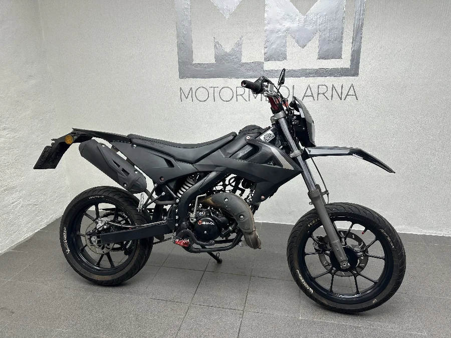 Rieju MRT Black edition från 2024. 697 mil, full servicebok och nyservad. Mätaren är precis bytt på garanti så den står på 0.